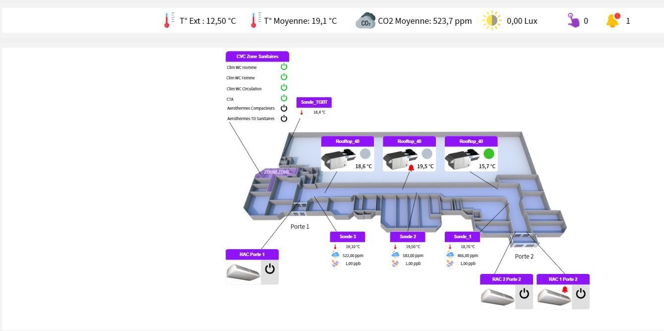 - la surveillance du C02, COV, T°C, HR%