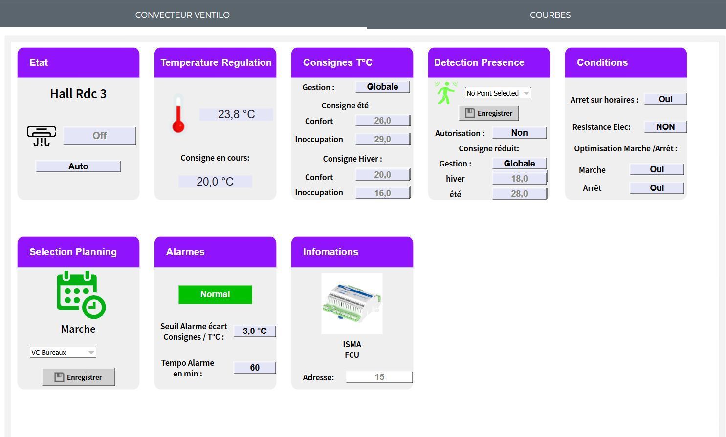 - Remplacement de 10 régulateurs de VC par des ISMA FCU avec thermostat ISMA TP DISP en modbus RTU